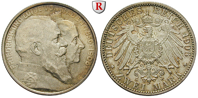 Friedrich I. 1852-1907. 2 Mark 1906 G. Goldene Hochzeit. J. 34; vorzüglich / vorzüglich-stempelfrisch, kl. Kratzer auf Vs.