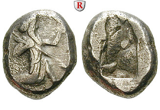 Siglos 16 mm approx. 420-375 BC. King of kings right, holding dagger and bow / Incuse square. Carradice Typ III B; good very fine