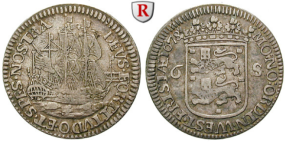 6 Stuivers (Scheepjesschelling) 1678. KM 76; good very fine