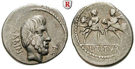 Roman Republican Coins, L. Titurius Sabinus, Denarius 89 BC, good vf