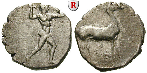 Stater 21 mm 420-410 BC. Apollo advancing right, holding branch / Stag standing right. HN Italy 2058; good very fine / very fine
