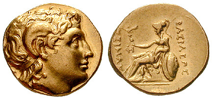 Dieser Stater des Lysimachos gibt das wirklichkeitsnahe Portrait Alexanders des Großen wieder, versehen mit dem Ammonshorn, dem Zeichen der Vergöttlichung des großen Feldherrn.