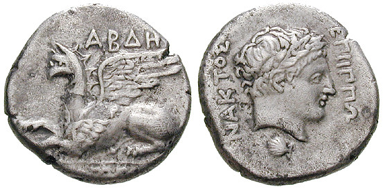 Diese Münze gehört zu den letzten Ausgaben Münzen vor der Einnahme der Stadt durch Philipp II. von Makedonien