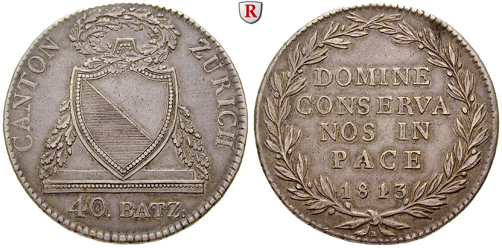 Taler zu 40 Batzen 40 mm 1753. Stadtschild mit Eichenlaub / Schrift im Lorbeerkranz. Dav. 366; sehr schön - vorzüglich