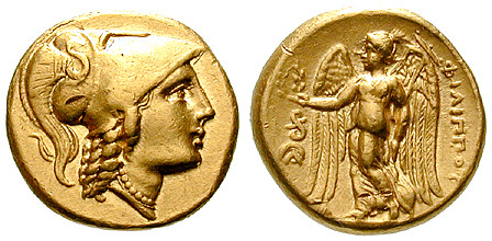 Philipp III. 323-317 v.Chr. Stater 319-317 v.Chr. Lampsakos. Athenakopf r. mit korinthischem Helm / Nike hält Kranz und Stylis, links Beizeichen. Price P13; GOLD, vorzüglich +, kleine Kerbe auf der Rs.
