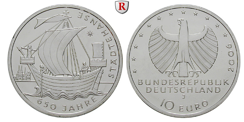 10 Euro 2006 J. 650 Jahre Hanse. J. 523; Polierte Platte
