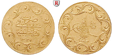Mohammed V. 1909-1918. 12 1/2 Piaster 0,83 g fein, 1910. AH 1329. Luxusprägung. Schl. 739; GOLD, vorzüglich