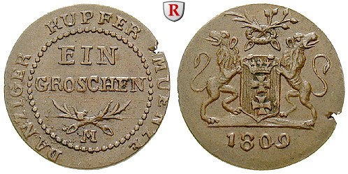 Freie Stadt 1807-1814. Kupfer-Groschen 1809. AKS 1; vorzüglich +, Schrf.