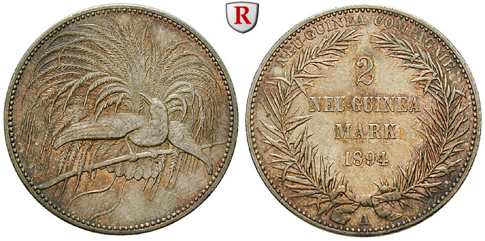 2 Neu-Guinea Mark 1894 A. Paradiesvogel. J. 706; fast stempelfrisch, Patina