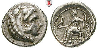 Alexander III. der Grosse 336-323 v.Chr. Hemidrachme Unbest. Griech.Mzst. Herakleskopf r. im Löwenfell / Thronender Zeus hält Zepter und Adler. Price -; sehr schön