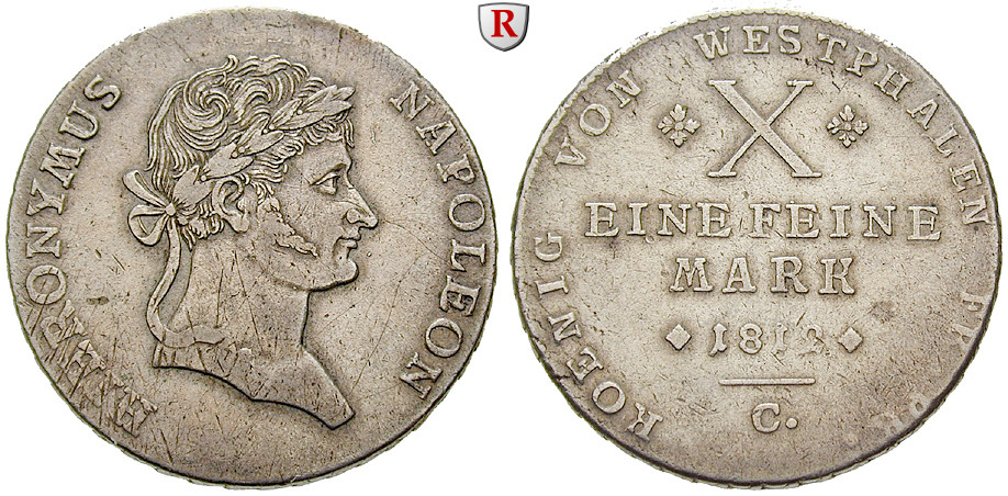 Hieronymus Napoleon 1807-1813. Konventionstaler 1812 C. AKS 8; sehr schön, l. Justierspuren