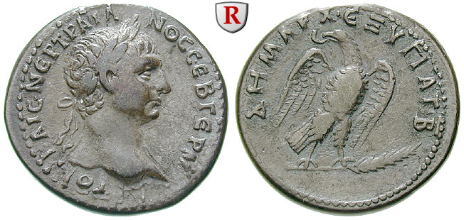 Traianus 98-117. Tetradrachme 98-99. Kopf r. mit Lorbeerkranz / Adler steht auf Palmzweig. SNG Cop. 195 vgl.; fast vorzüglich