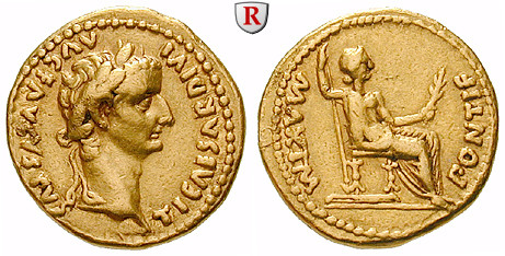 Zur Münzgeschichte: Seine Prägungen besitzen nur wenige Rückseitentypen. Am bekanntesten ist das Münzbild mit der thronenden weiblichen Gestalt mit Ölzweig, Zepter und Lanze, eine Personifikation des Friedens (PAX), und zwar in Gestalt der Livia.