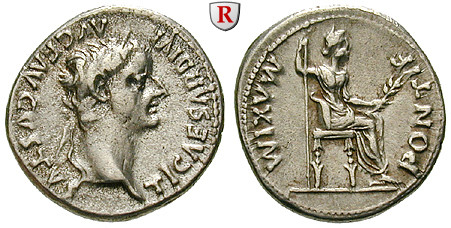 Zur Münzgeschichte: Seine Prägungen besitzen nur wenige Rückseitentypen. Am bekanntesten ist das Münzbild mit der thronenden weiblichen Gestalt mit Ölzweig, Zepter und Lanze, eine Personifikation des Friedens (PAX), und zwar in Gestalt der Livia.