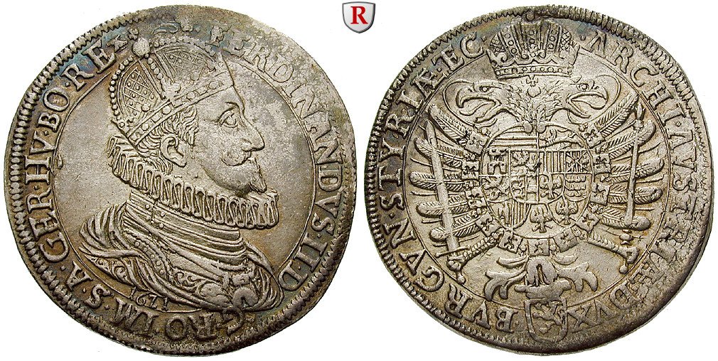 Ferdinand II. 1619-1637. Taler 1621 Graz. Dav. 3100; fast vorzüglich, sauber entfernter Henkel