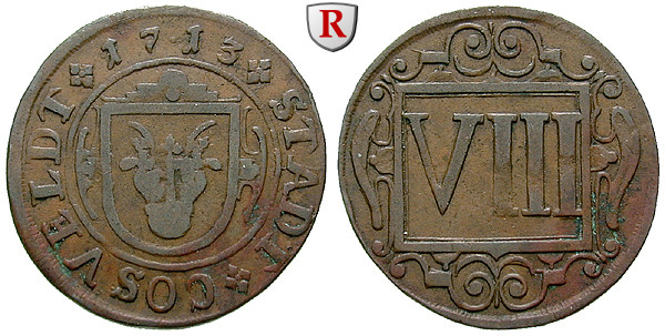Kupfer-8 Pfennig 1713. Weing. 178; fast sehr schön