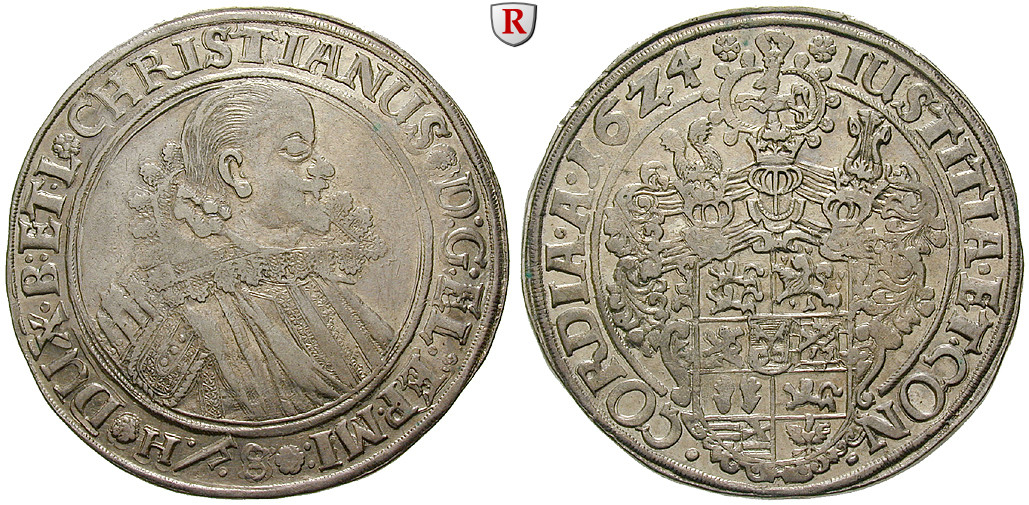 Christian von Minden 1611-1633. Taler 1624 Clausthal. Brustbild / Behelmtes Wappen. Dav. 6457; sehr schön + / fast vorzüglich