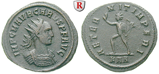 Zur Münzgeschichte: Während der Regierungszeit des Carus wurden in recht großen Mengen Antoniniane geprägt. Sie bestanden aus Bronze mit einer geringen Beimengung von Silber, um den Schein der Silbermünze aufrechtzuerhalten. Goldene Aurei des Carus sind selten und heute hochbezahlte Raritäten.