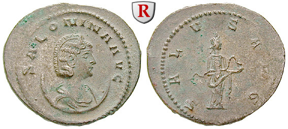 Saloninas Münzen wurden während der Herrschaft ihres Schwiegervaters (Valerianus I.) und ihres Gatten Gallienus geprägt. Hauptnominal war der Billon-Antoninian. Auch die Münzstätten entsprechen denen des Gallienus: Rom, Lyon, Mailand, Siscia u. a. Saloninas Portrait ähnelt durch die Frisur denen der syrischen Kaiserinnen. Im ganzen aber wirkt sie durch die leicht gebogene Nase, den kleinen Mund und die nach oben blickenden Augen zarter als jene und verkörpert damit durchaus ihren Beinamen Chrysogone (Goldgezeugte). Diese Bezeichnung ist im Sinne von edel und wahrhaft gemeint.