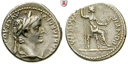 Zur Münzgeschichte: Seine Prägungen besitzen nur wenige Rückseitentypen. Am bekanntesten ist das Münzbild mit der thronenden weiblichen Gestalt mit Ölzweig, Zepter und Lanze, eine Personifikation des Friedens (PAX), und zwar in Gestalt der Livia.