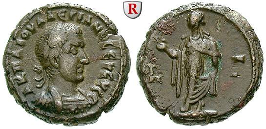 Valerianus I. 253-260. Billon-Tetradrachme 22,1 mm Jahr 3 = 255-256. Gepanzerte Büste r. mit Lorbeerkranz / Elpis schreitet l. mit Blume und gerafftem Gewand. BMC 2127var.; sehr schön +