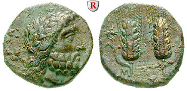 Bronze 16 mm 300-250 v.Chr. Kopf des Zeus r. mit Lorbeerkranz / Zwei Ähren v.v. HN 1673; sehr schön - vorzüglich, selten