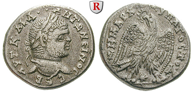 Seleukis und Pieria, Laodikeia ad mare. Tetradrachme 27 mm 215-217. Kopf r. mit Lorbeerkranz / Adler steht v.v., Kopf l. mit Lorbeerkranz im Schnabel, zwischen den Klauen Stern. Prieur 1179; sehr schön +