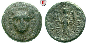 Antiochos I 280-261 BC. Bronze 14 mm 277-272 BC Sardeis. Helmeted head of Athena facing / Nike standing left with palm branch, crowning kings name with laurel wreath. SNG Spaer 233f.; fine, black patina