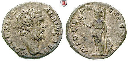 Zur Münzgeschichte: Nachdem Clodius Albinus den Caesartitel angenommen hatte, ließ Septimius Severus für ihn in Rom Münzen prägen. Als Caesar wurde Albinus ohne Lorbeerkranz abgebildet, der nur dem Augustus zustand. Das Portrait ist überaus charakteristisch mit Vollbart und einer üppigen Haartracht.