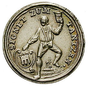 Siegelabguß 25 mm. Moderner Abguß in Silber. Signet zum Tantzen. sehr schön - vorzüglich