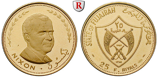 25 Riyals 4,66 g fein, 1969. Richard Nixon. 5; GOLD, Polierte Platte, berührt