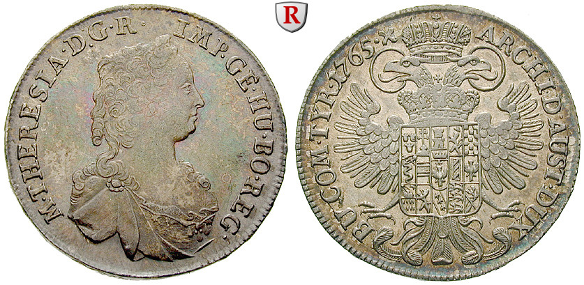 Maria Theresia 1740-1780. 1/2 Taler 1765 Hall. Herinek 659; very fine / very fine to extremely fine, nice patina