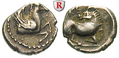 Obol 9,5 mm 400-350 v.Chr. Pegasusprotome r. / Kniender Ziegenbock l. SNG Aul. 5635; sehr schön +