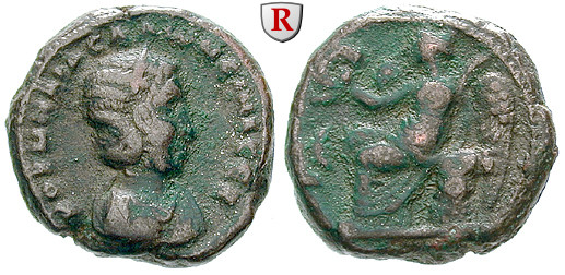 Salonina, Frau des Gallienus +268. AE-Tetradrachme 22 mm Jahr 5 = 257-258 Alexandria. Drapierte Büste r. mit Diadem / Nike sitzt l. auf Panzer mit Lorbeerkranz und Palmzweig. Milne 3968; fast sehr schön