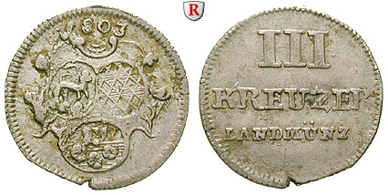 3 Kreuzer 1803. Wibel 364-366; sehr schön +, kl. Zainende, kl. Randfehler