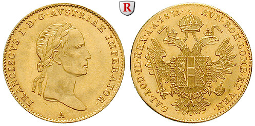 Franz II (I) 1792-1835. Ducat 21 mm 3.44 g fine, 1831-1835. Laureate bust right / Crowned double eagle. Friedb. 467; GOLD, very fine to extremely fine