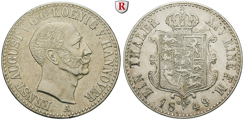 Ernst August 1837-1851. Taler 1849 A. AKS 105; sehr schön