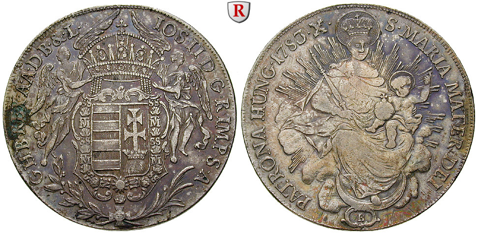 Joseph II. 1765-1790. Madonnentaler 1783 Kremnitz. Dav. 1168; sehr schön, Rand l. bearbeitet