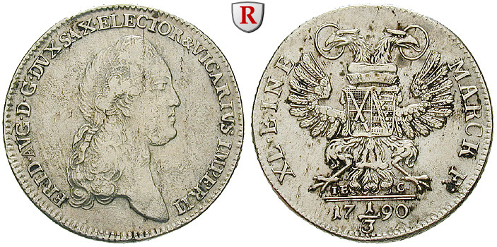 Friedrich August III. 1763-1806. 1/3 Taler 1790 Dresden IEC. Auf das Vikariat. Merseb. 1965; sehr schön, gereinigt, rauher Schrötling