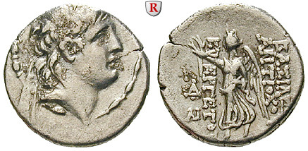 Antiochos VII. 138-129 v.Chr. Drachme 18 mm 138-129 v.Chr. Antiochia. Kopf r. mit Diadem / Nike schreitet l. mit Palmzweig und Lorbeerkranz. SNG Spaer 1876ff. vgl.; sehr schön, leicht dezentriert