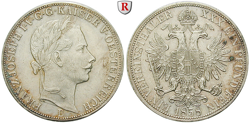 Franz Joseph I. 1848-1916. Vereinstaler 1858 B. Jl. 312; fast vorzüglich, kl. Flecken