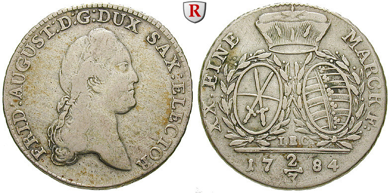Friedrich August III. 1763-1806. 2/3 Taler 1784 Dresden IEC. Buck 153f; very fine