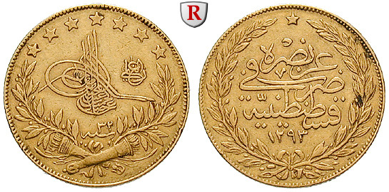 Abdul Hamid II. 1876-1909. 100 Piaster 6.61 g fine, 1906. Friedb. 41; GOLD, very fine