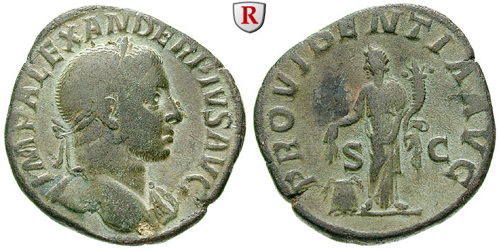 Zur Münzgeschichte: Seine Münzen wurden in Rom und Antiochia (Syrien) in fast allen Nominalen geprägt. Mit den Münzbildern nahm er wieder Bezug auf die alten Gottheiten, um den Sonnenkult Elagabals vergessen zu machen. Er verzichtete aus dem gleichen Grund auf die Ausprägung von Antoninianen (Doppeldenaren), weil diese mit ihren Strahlenkronen (Kronen des Sol) der Kaiser zu sehr an seinen Vorgänger erinnerten.