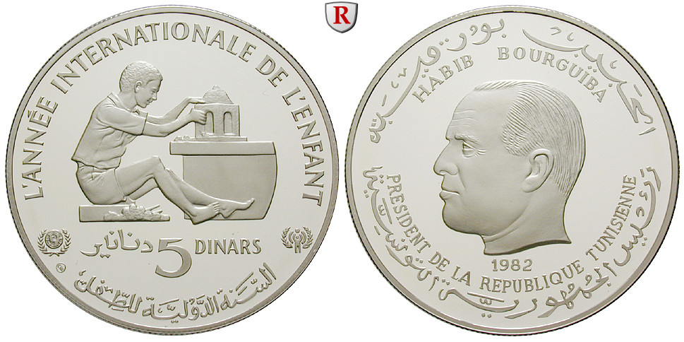 5 Dinars 1982. Jahr des Kindes. Polierte Platte