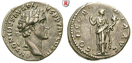 Zur Münzgeschichte: Die meisten seiner Prägungen stammen aus Rom. Ob auch in den Provinzen Reichsmünzen geprägt worden sind, ist unsicher. Im Ganzen fallen die Schrötlinge der Denare und Sesterzen nicht mehr so gleichmäßig rund wie unter Hadrianus aus, sondern eher oval oder unregelmäßig. Manchmal sind die Schrötlinge der Denare sehr knapp.