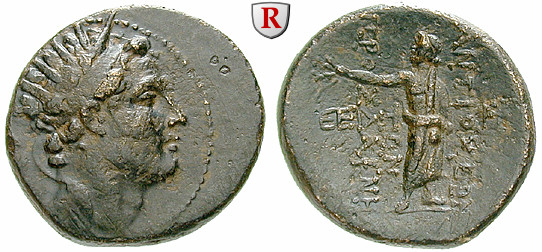 Antiochos IV. 175-164 v.Chr. Bronze 22 mm 175-164 v.Chr. Antiocheia. Kopf r. mit Strahlenkrone / Zeus l., hält Kranz. SNG Spear 990vgl.; sehr schön / sehr schön-vorzüglich