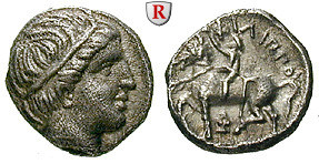 Philipp II. 359-336 v.Chr. Hemidrachme 12 mm 359-354 v.Chr. Pella. Kopf des Apollo r. mit Taenie / Reiter l., darunter Monogramm. LeRider Taf. 1,4; sehr schön - vorzüglich