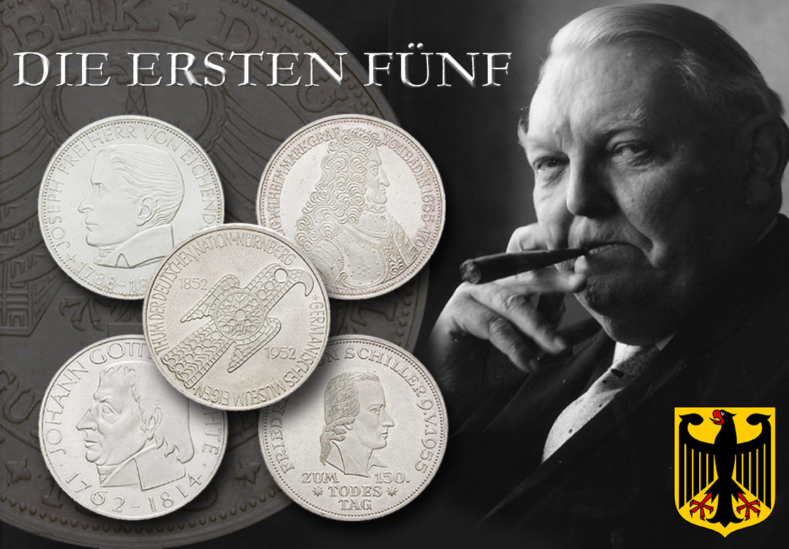 5 DM. Serie 5 DM Germanisches Museum bis Fichte (5 Münzen). vorzüglich