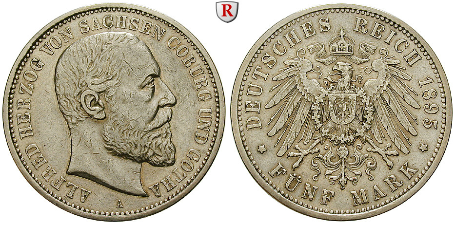 Alfred 1893-1900. 5 Mark 1895 A. J. 146; sehr schön +
